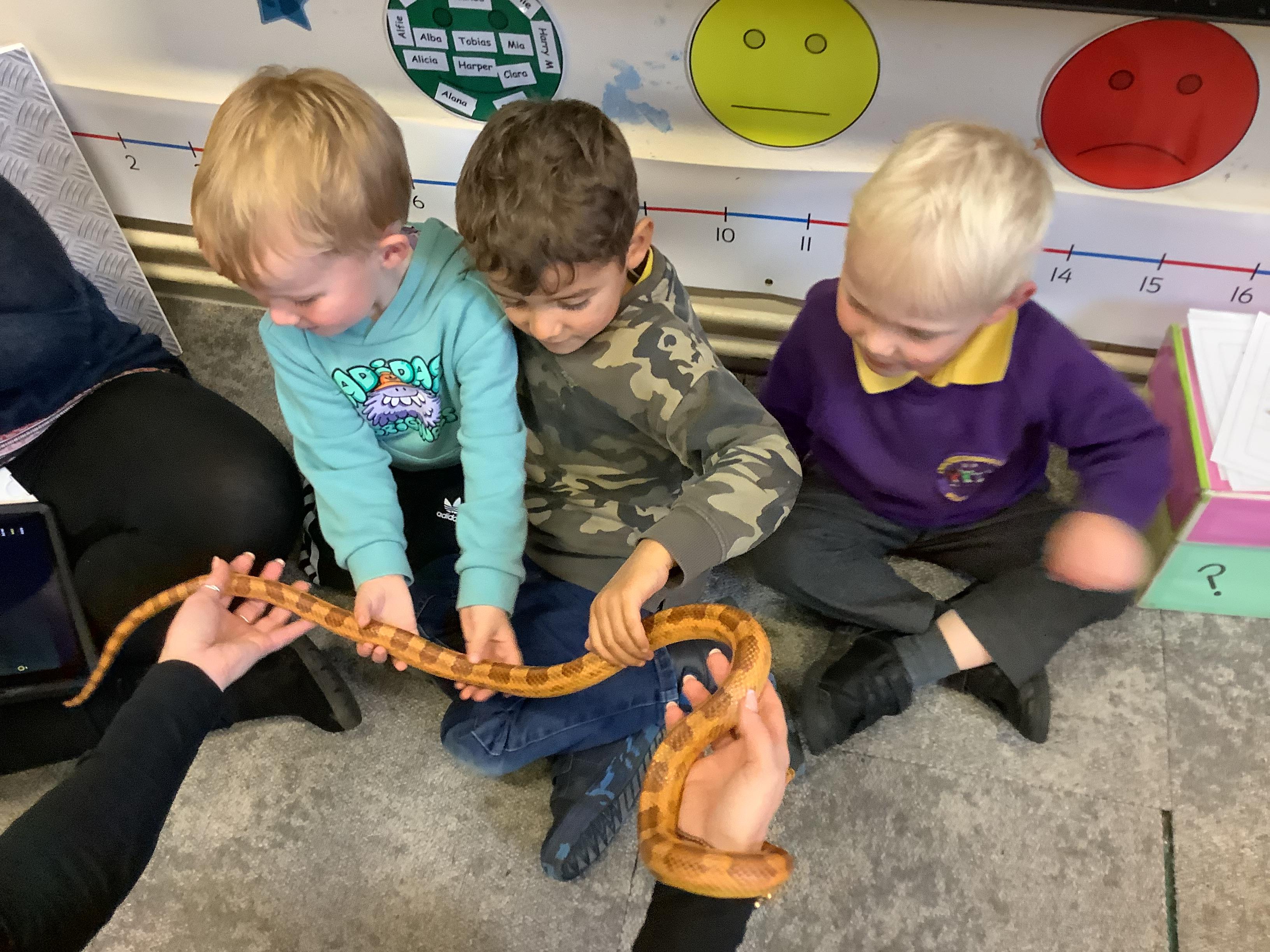 Through a re-telling of The Gruffalo, the children learnt a lot about the different creatures that Gemma brought to school. They learnt all bout why each creature was the colour it was, along with why they had scales or claws, were slimy or shiny!
