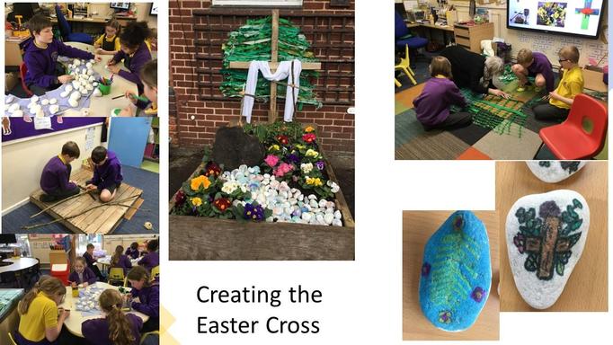The Cross: Under the creative supervision of Mrs Brown, the children created a beautiful cross which reflected the significance of Easter.