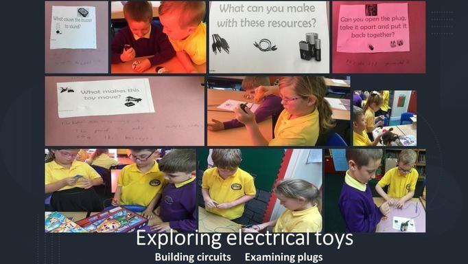 In science, Y3/4 studied electricity - the first lesson was all about exploring the concept of electricity and how this makes things work. This involved playing with electrical toys and games, working out how to build a circuit to make a light bulb come on without being shown and using screwdrivers to take some old plugs apart to examine how plugs are wired and find the fuse.