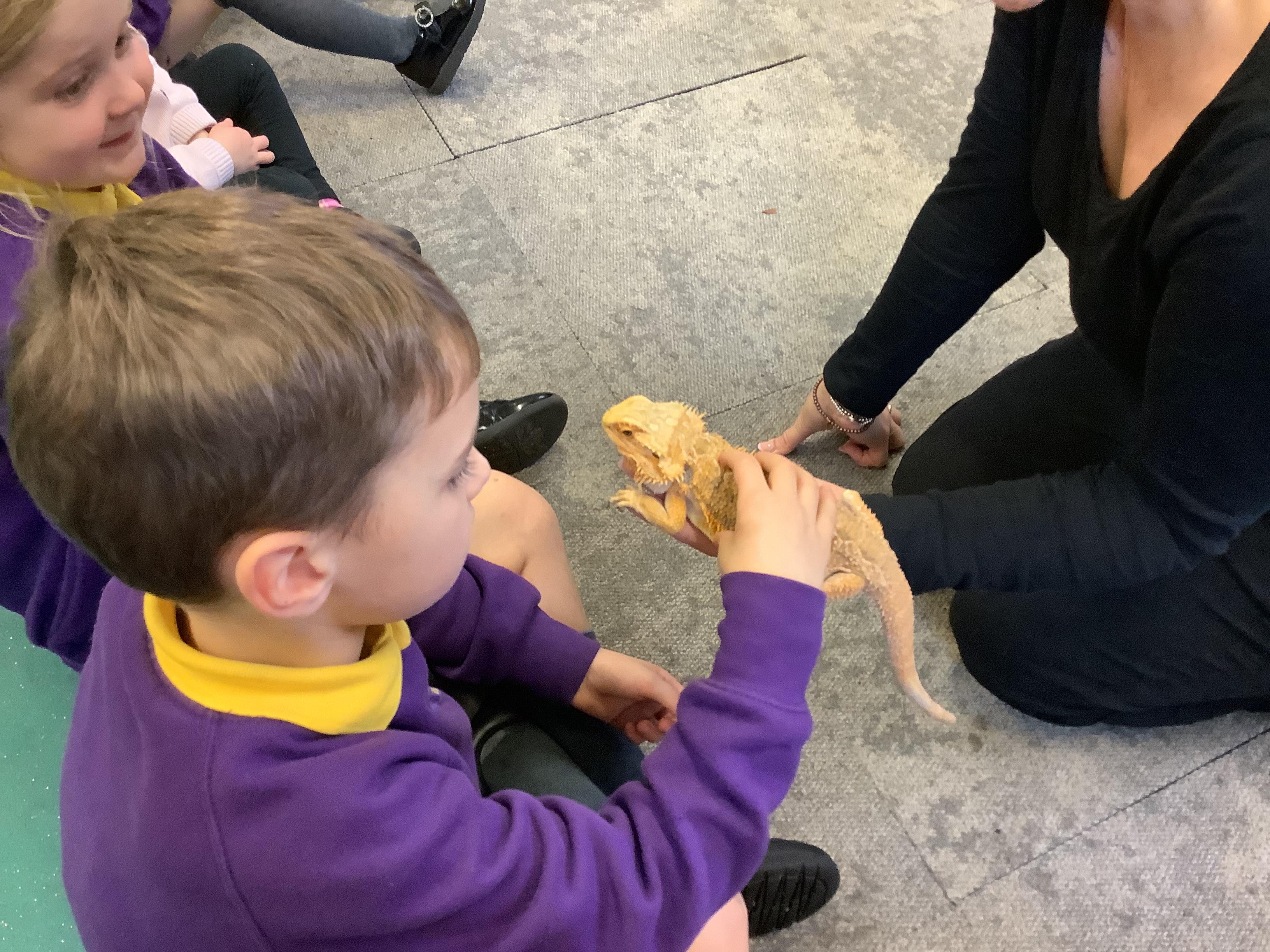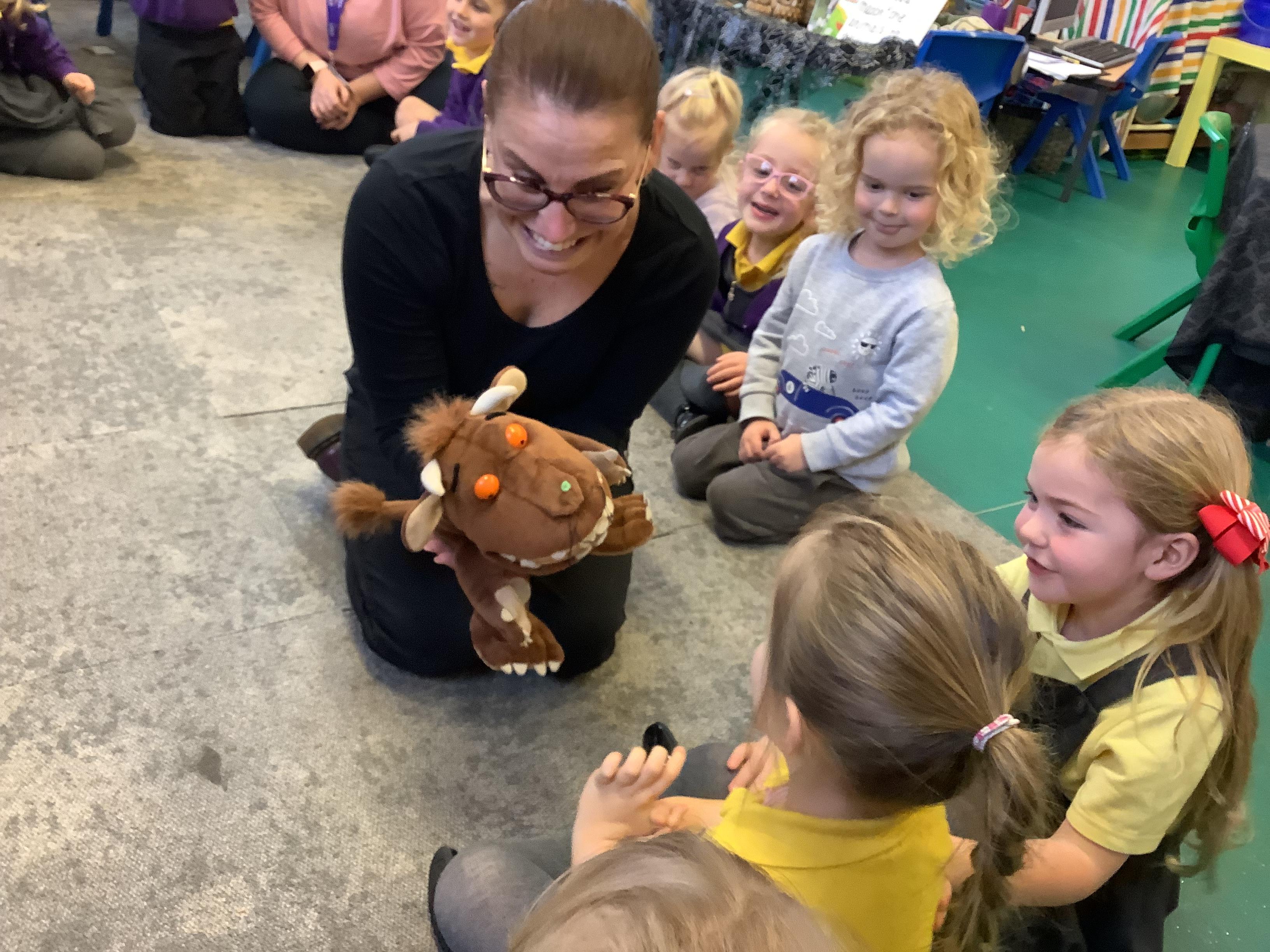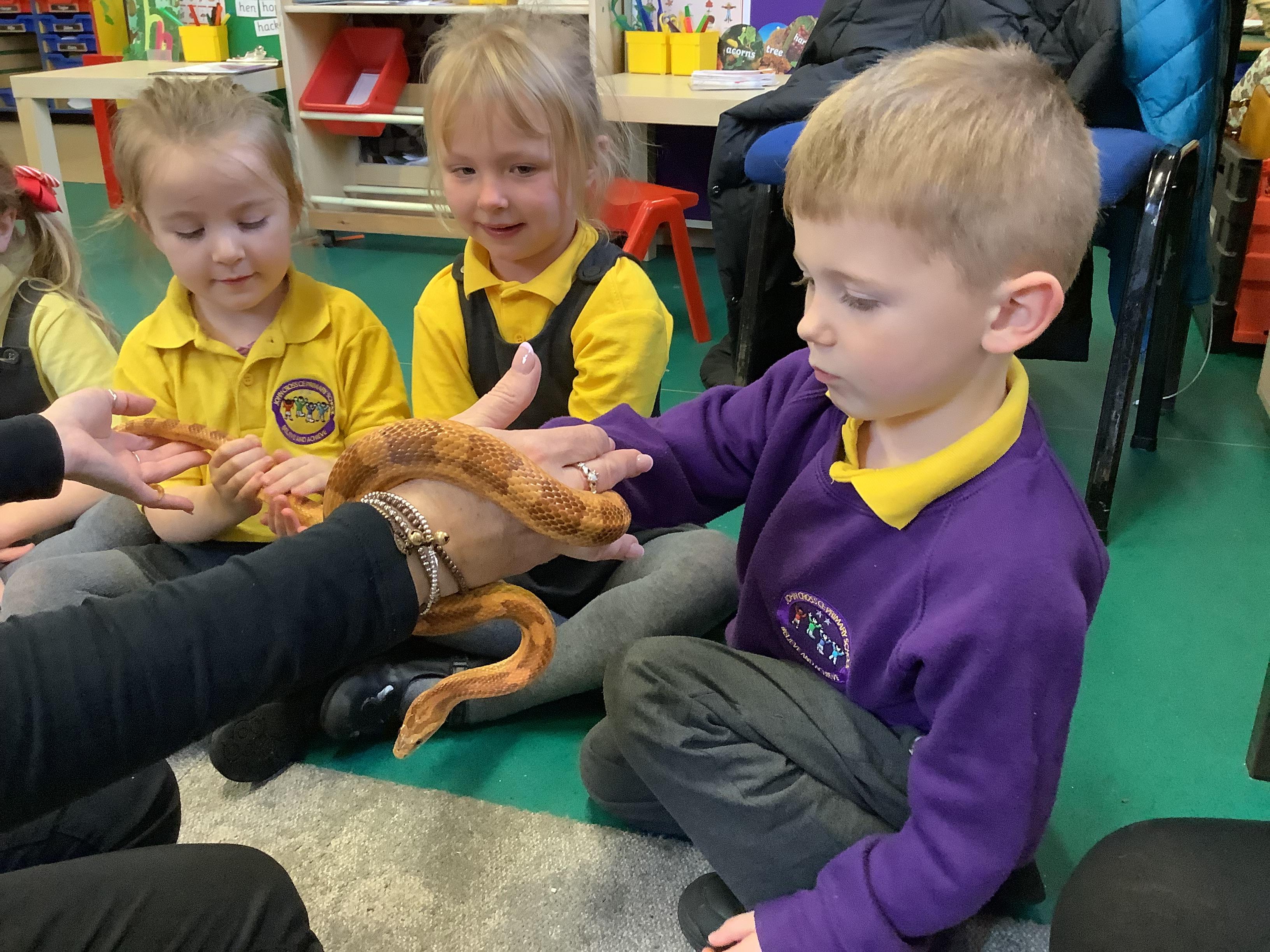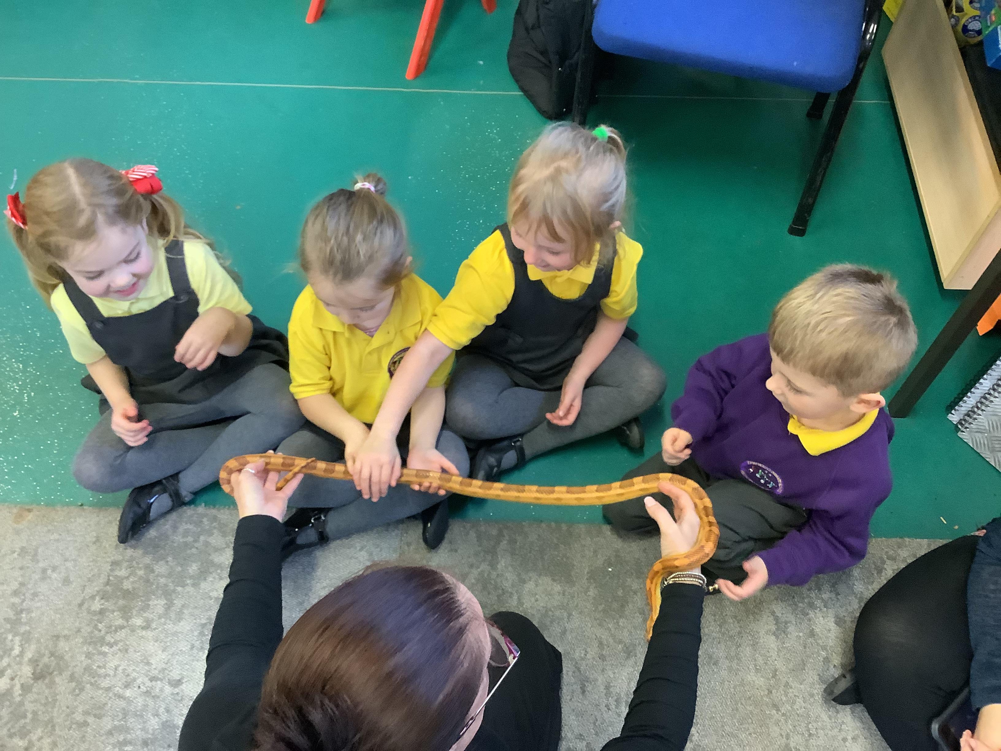 Through a re-telling of The Gruffalo, the children learnt a lot about the different creatures that Gemma brought to school.  They learnt all bout why each creature was the colour it was, along with why they had scales or claws, were slimy or shiny!