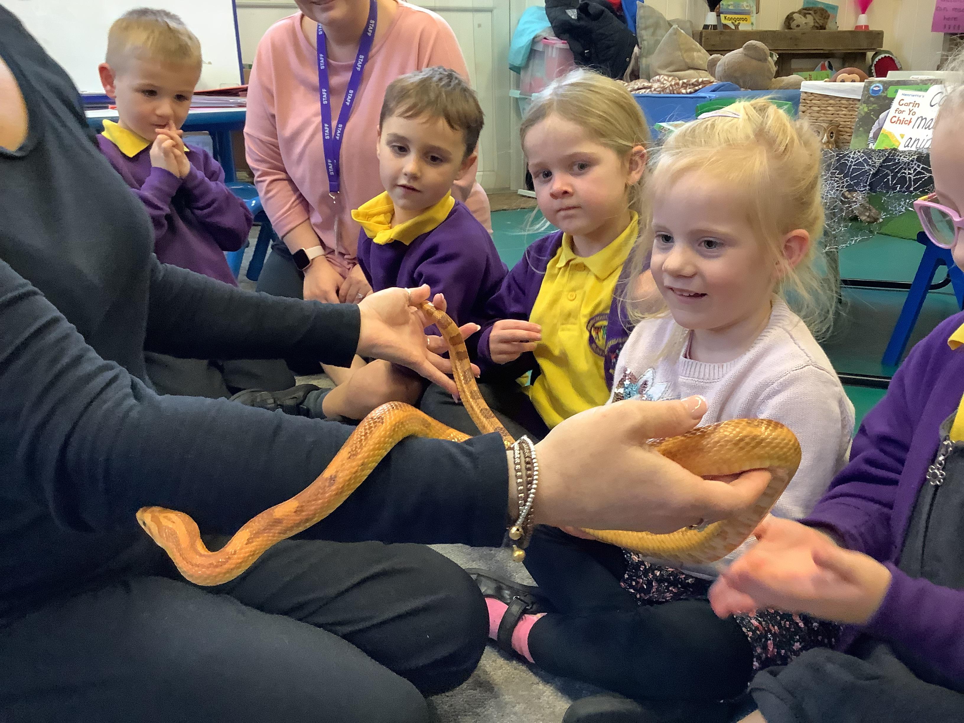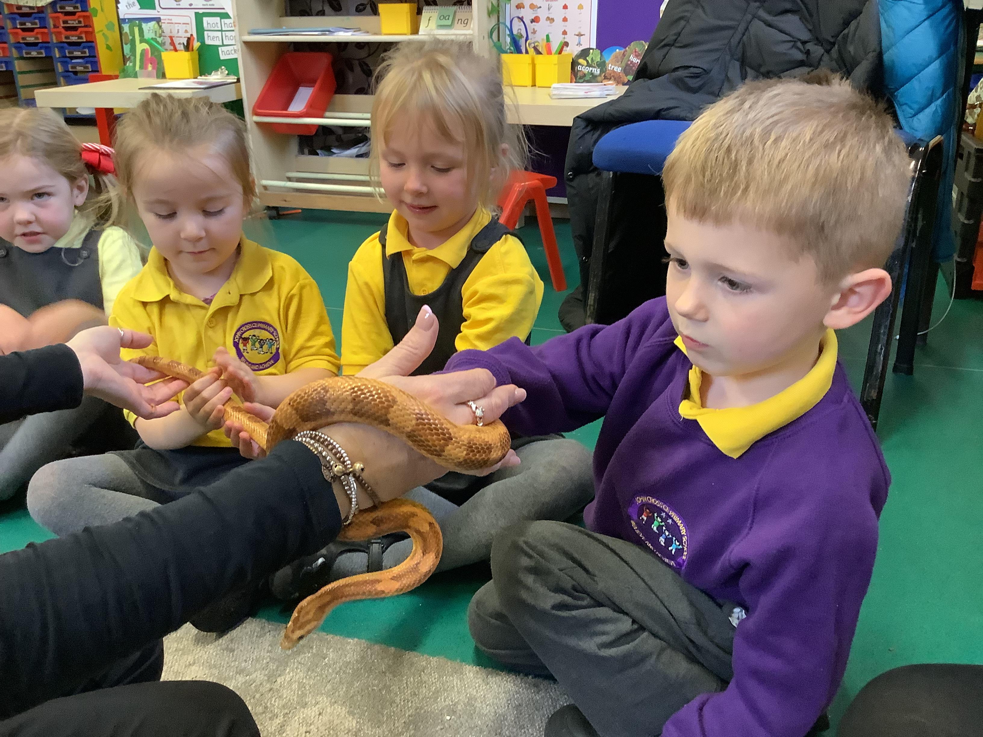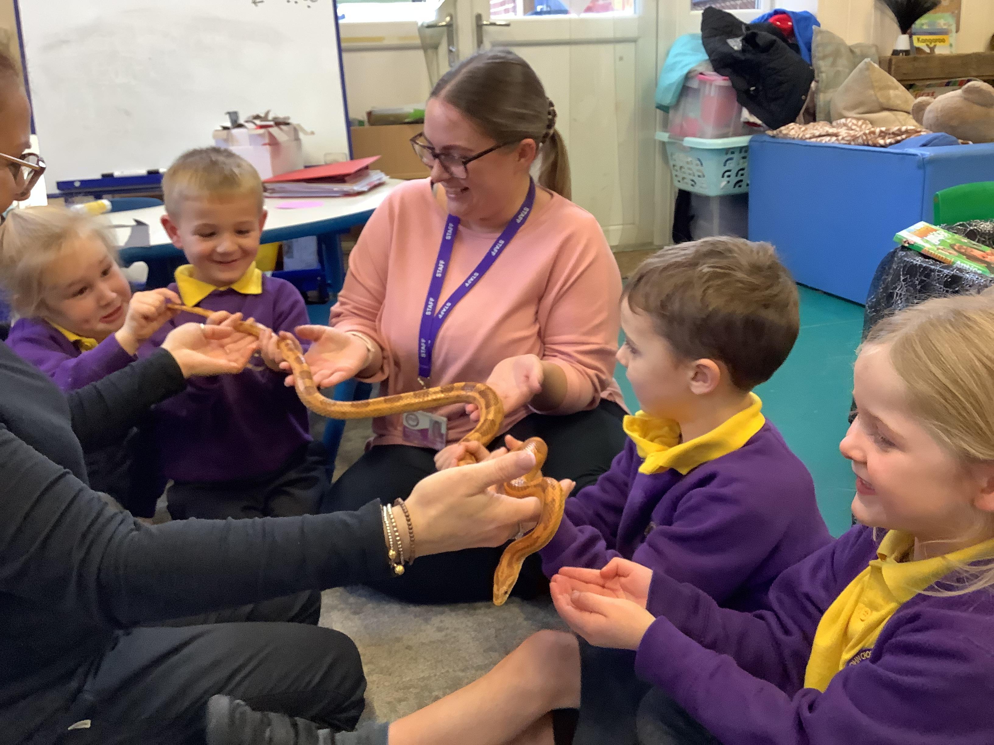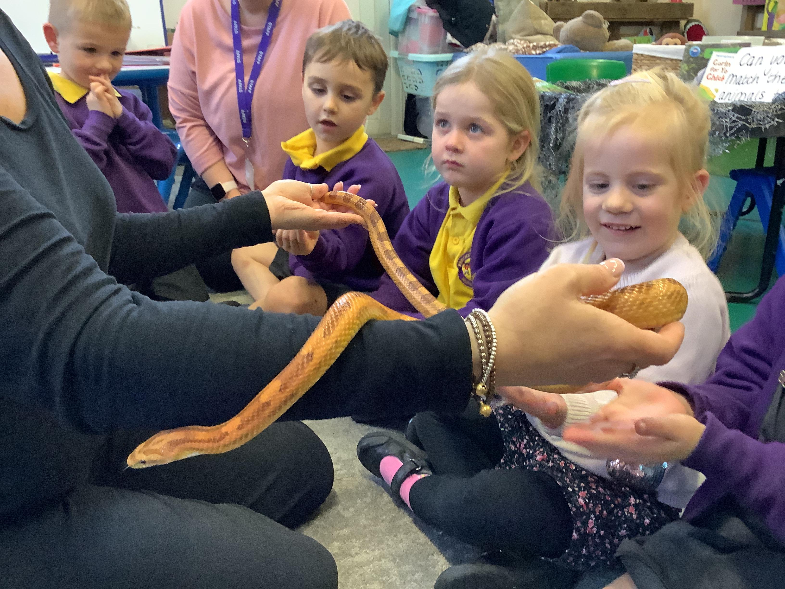 Through a re-telling of The Gruffalo, the children learnt a lot about the different creatures that Gemma brought to school.  They learnt all bout why each creature was the colour it was, along with why they had scales or claws, were slimy or shiny!