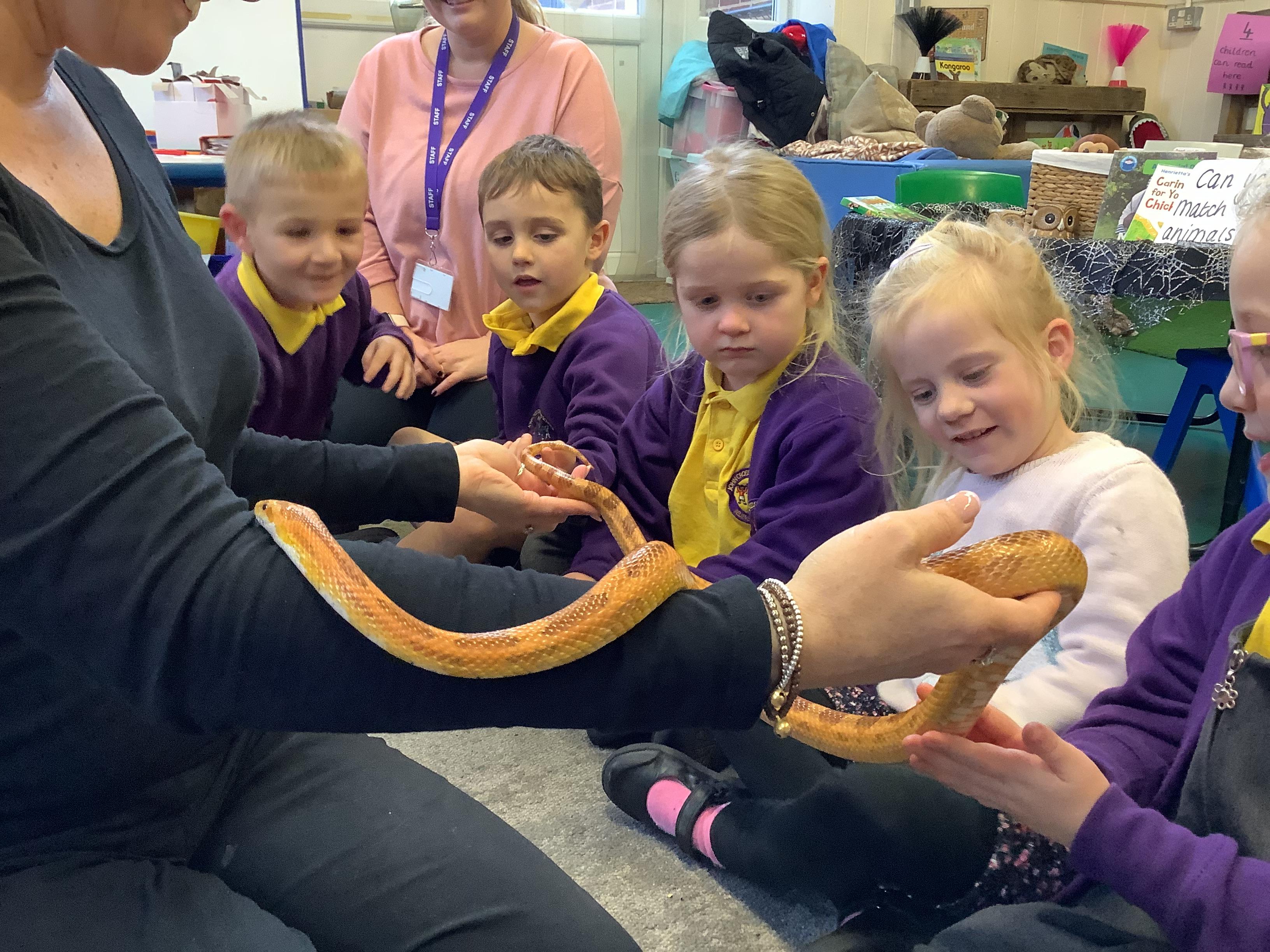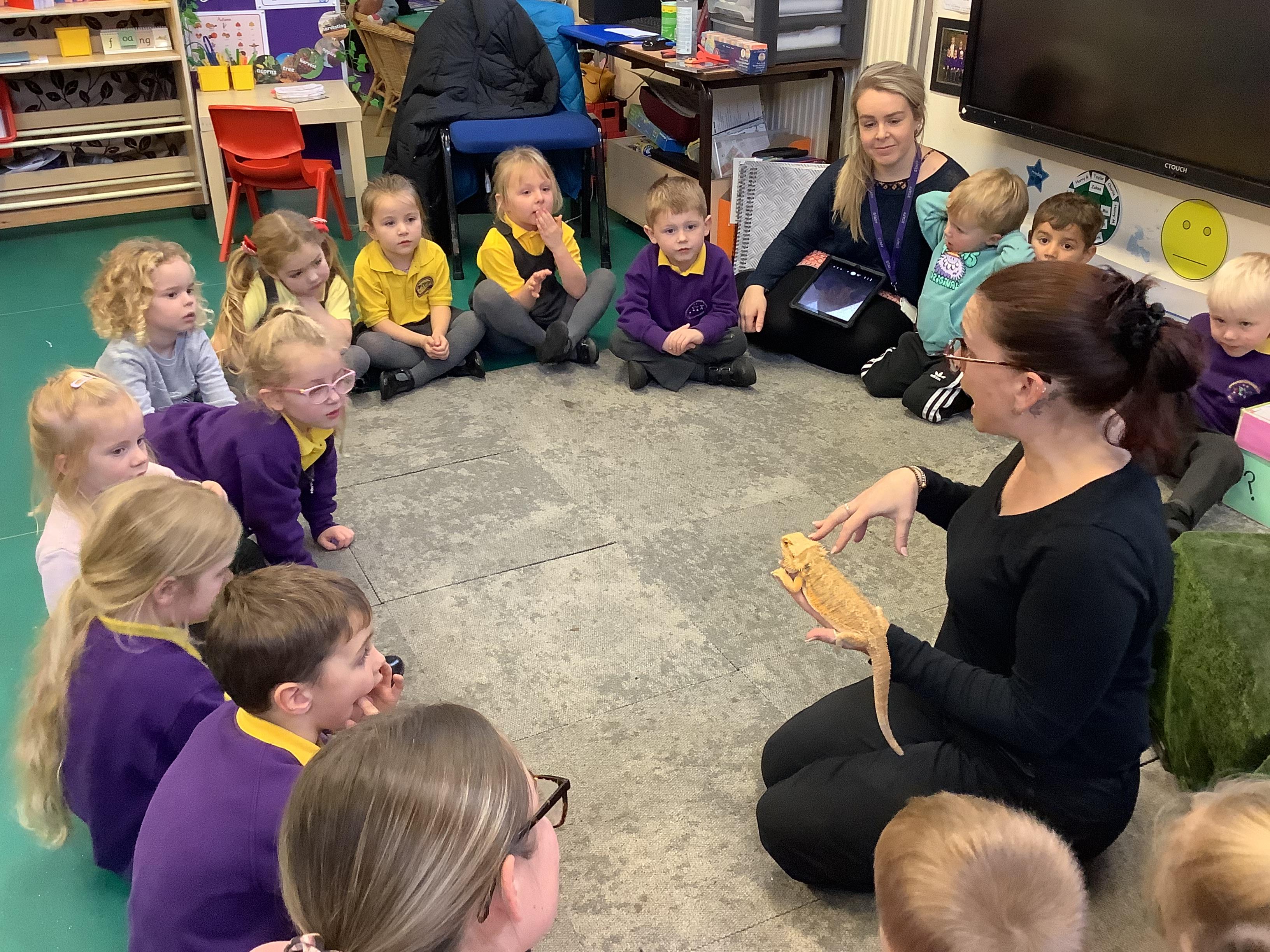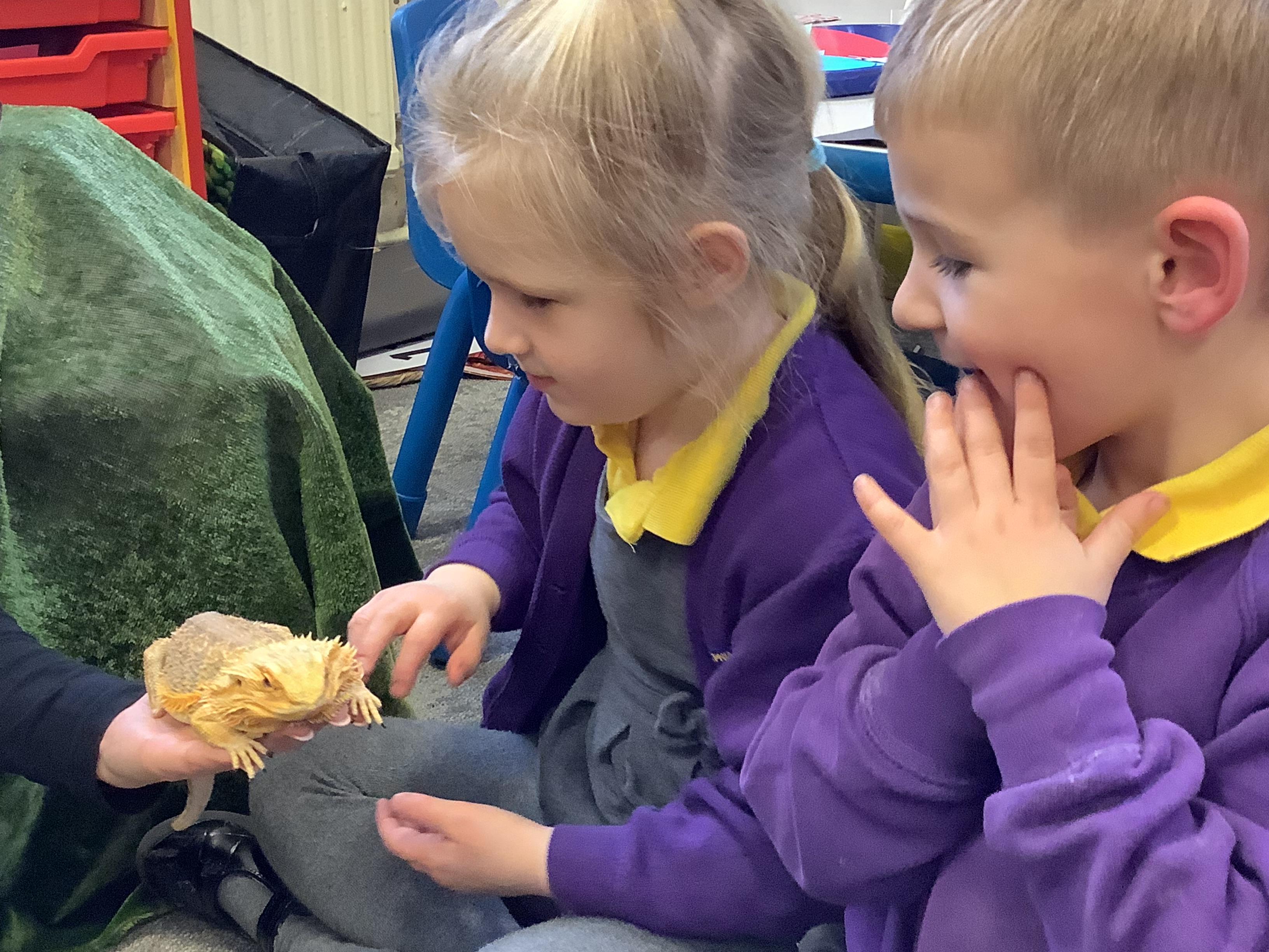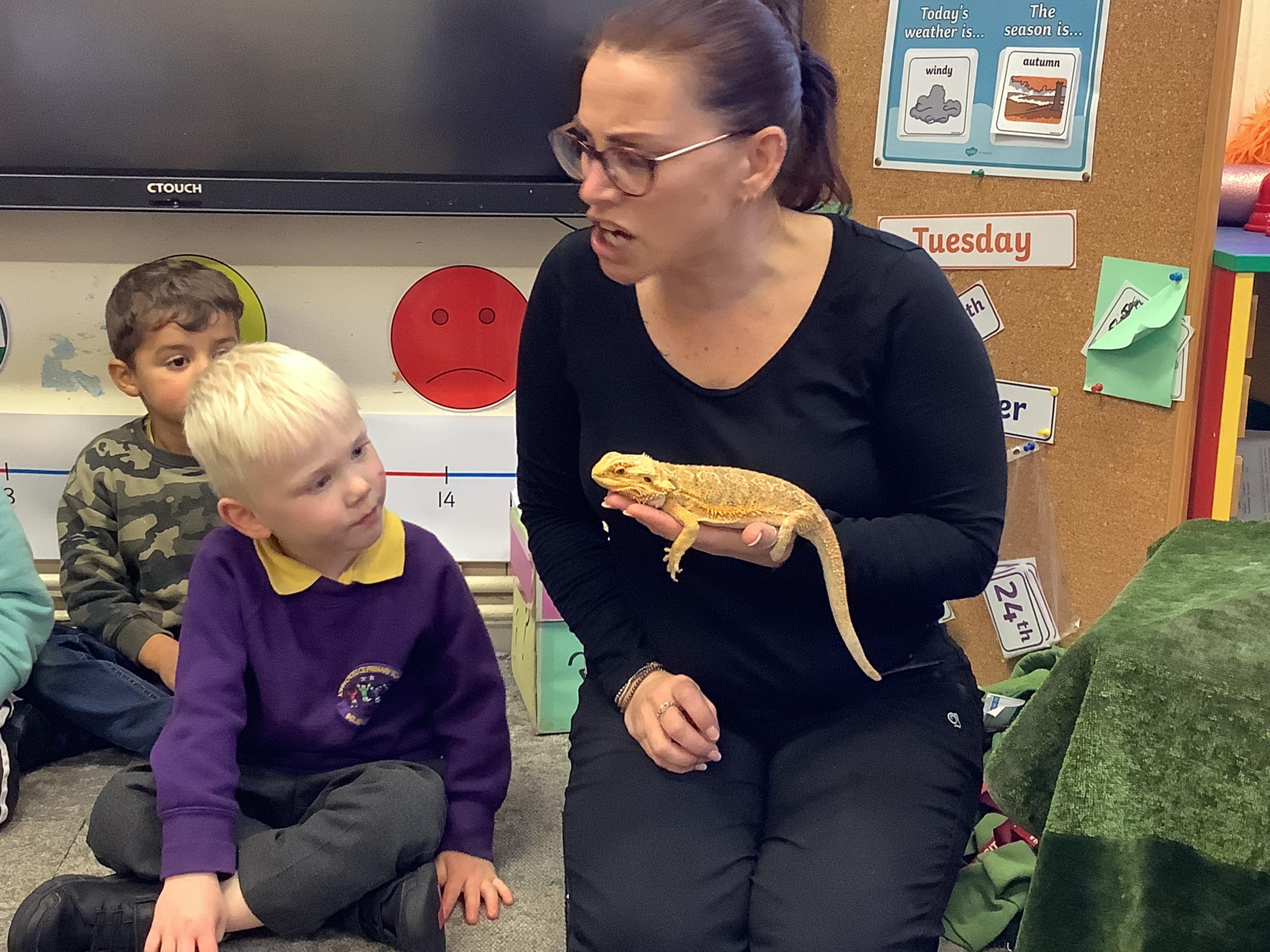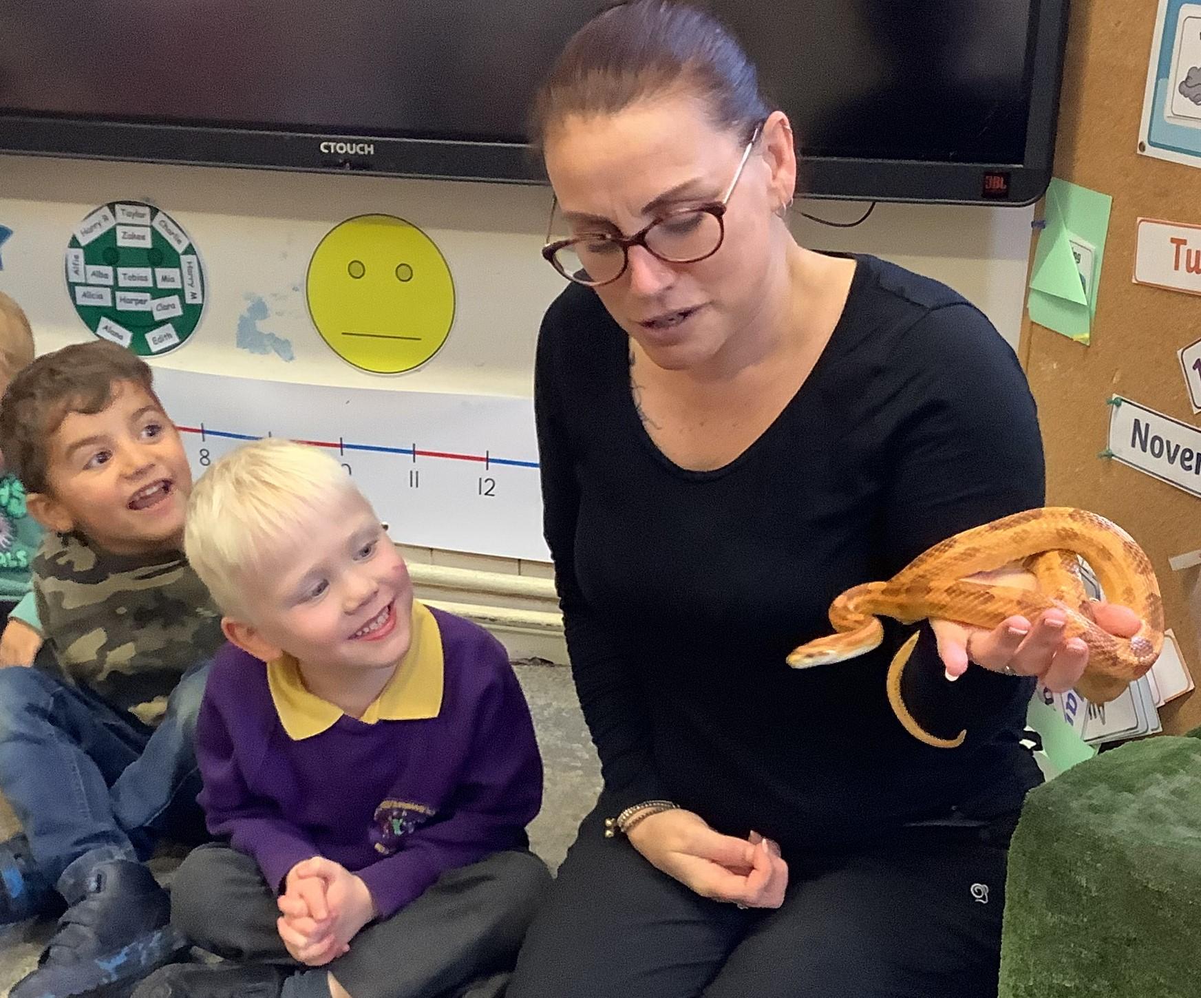 Through a re-telling of The Gruffalo, the children learnt a lot about the different creatures that Gemma brought to school.  They learnt all bout why each creature was the colour it was, along with why they had scales or claws, were slimy or shiny!