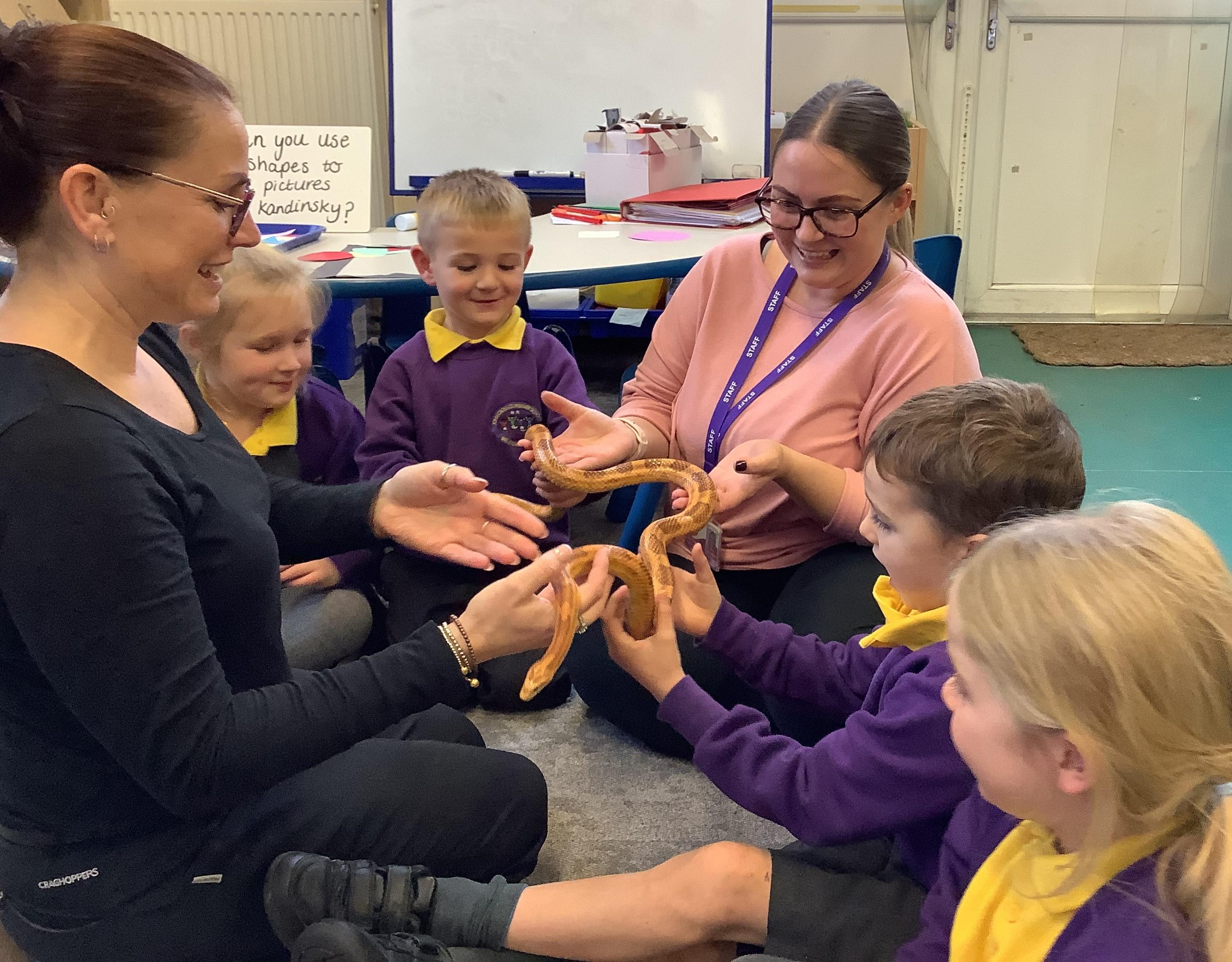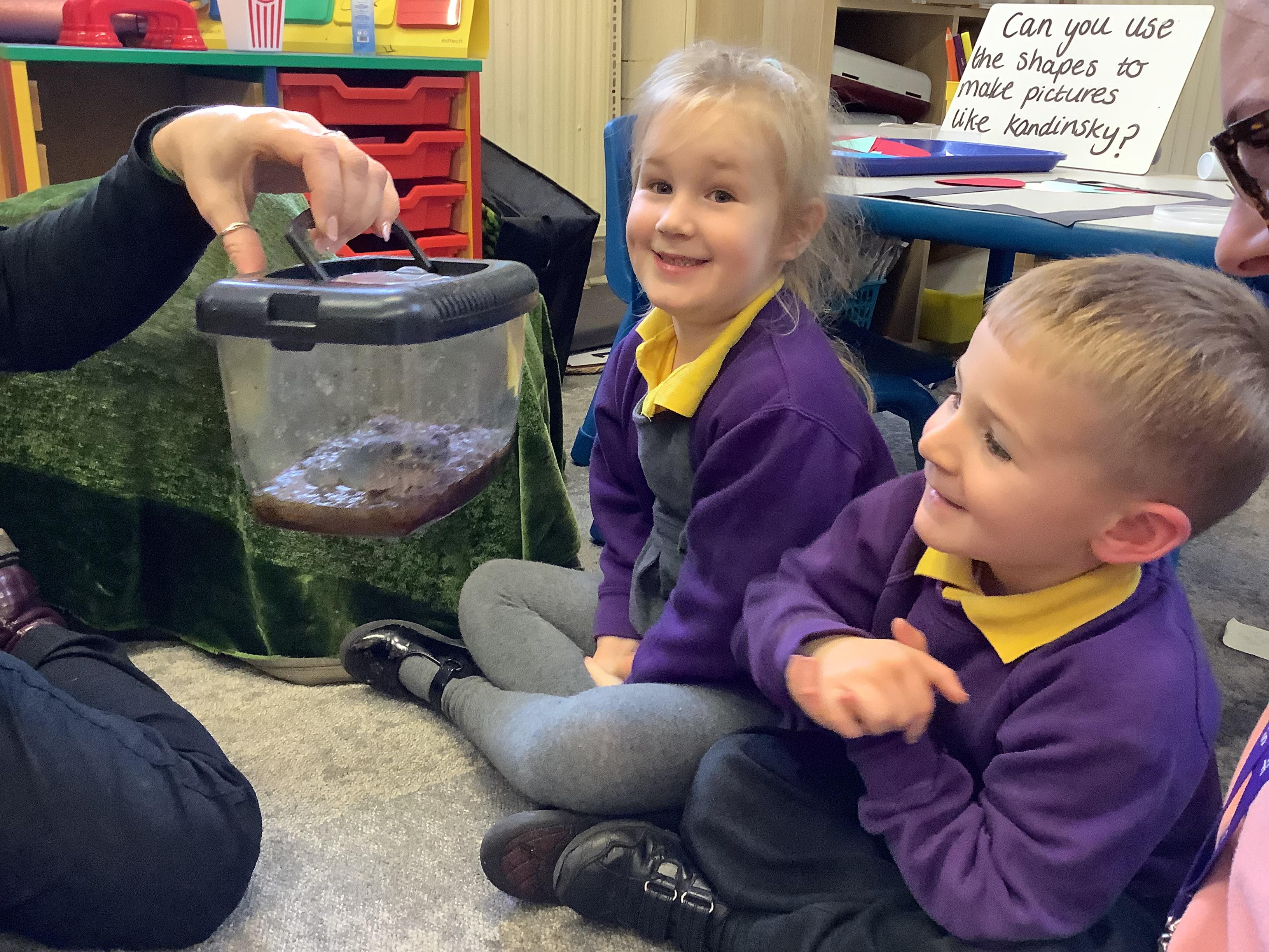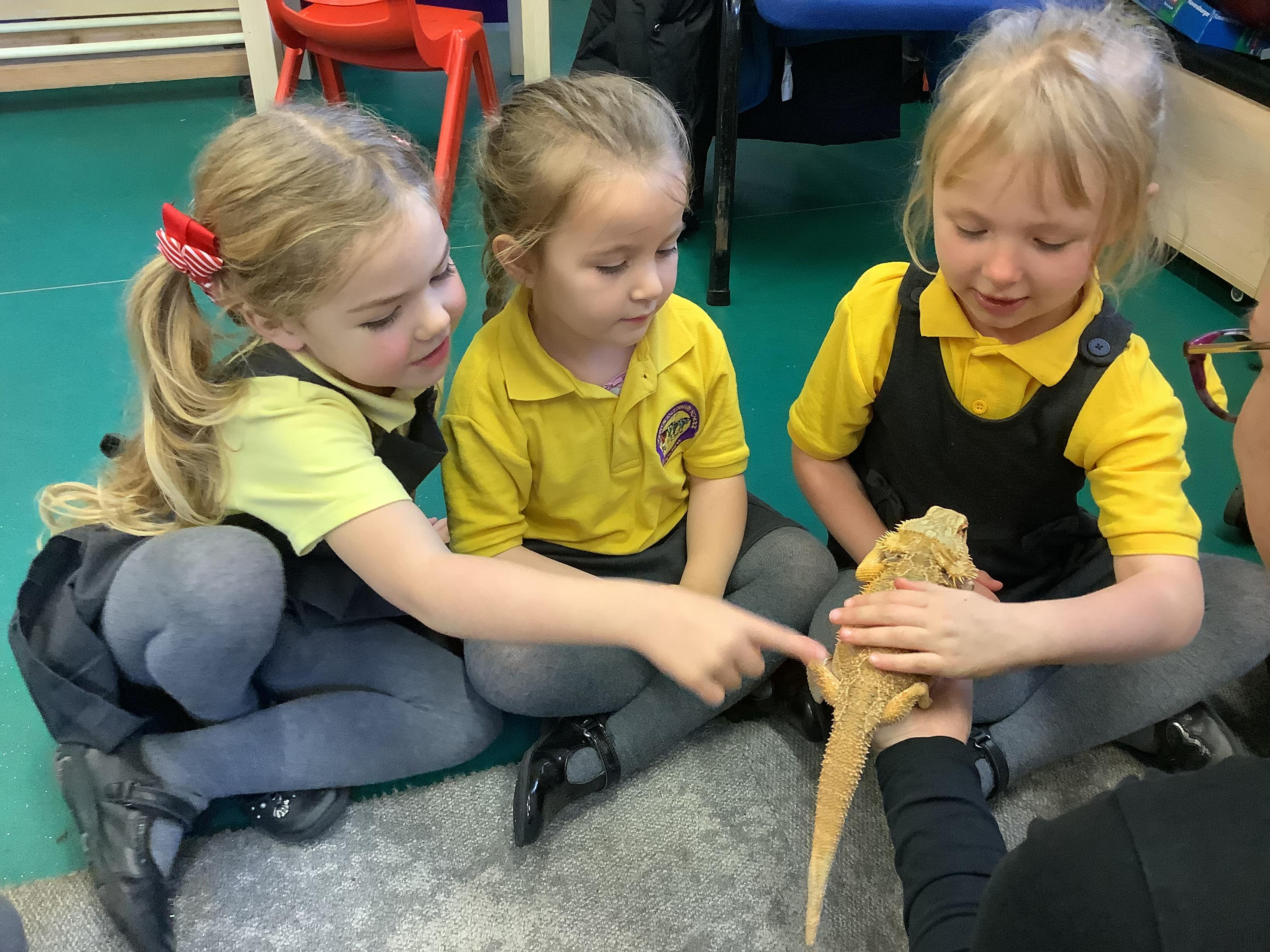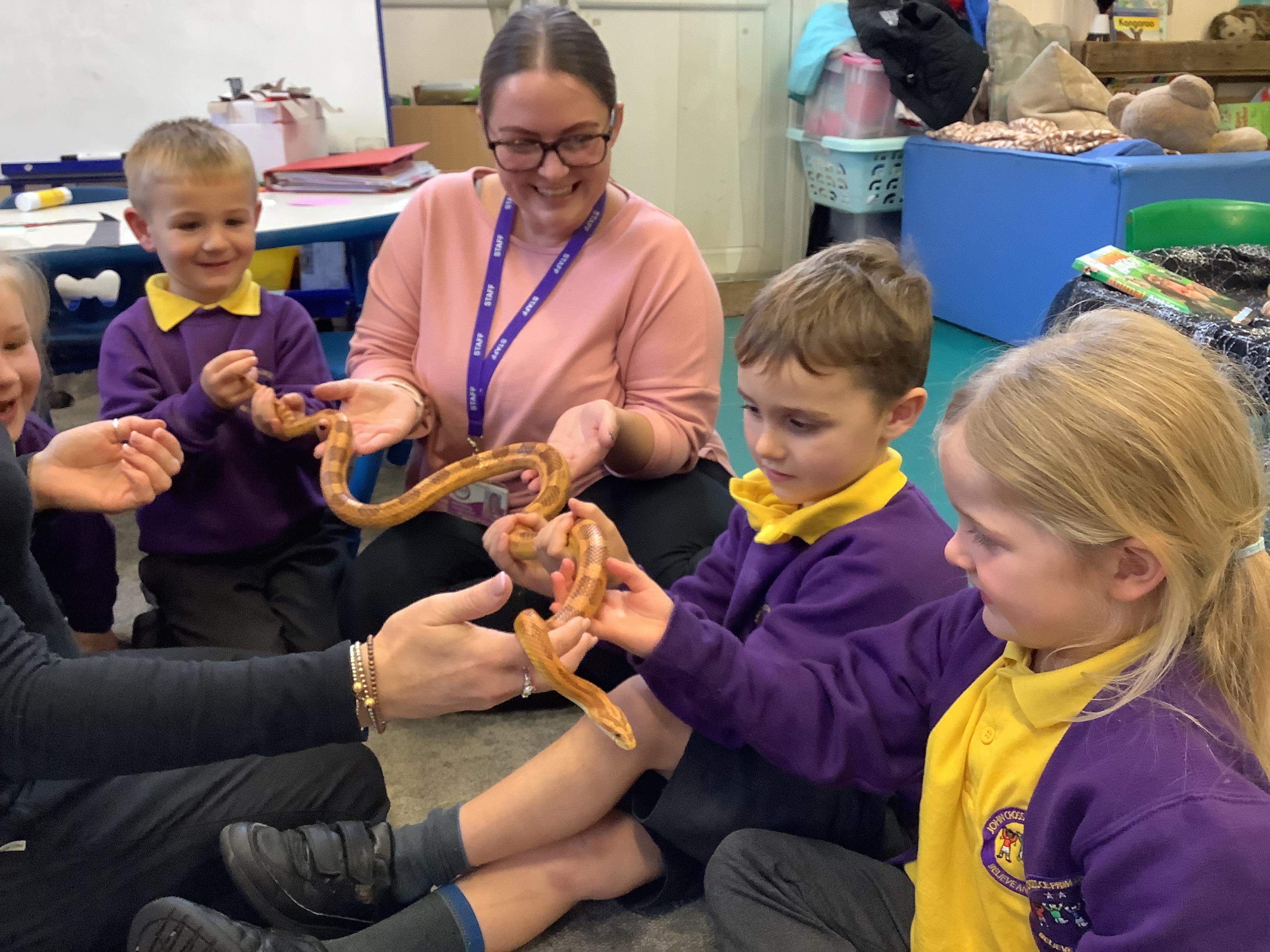 Through a re-telling of The Gruffalo, the children learnt a lot about the different creatures that Gemma brought to school.  They learnt all bout why each creature was the colour it was, along with why they had scales or claws, were slimy or shiny!