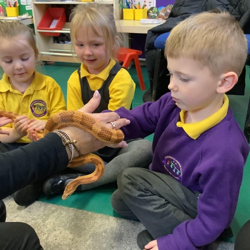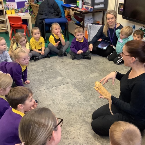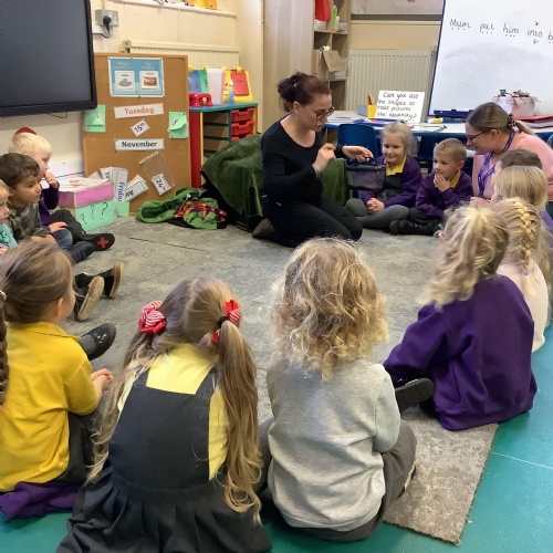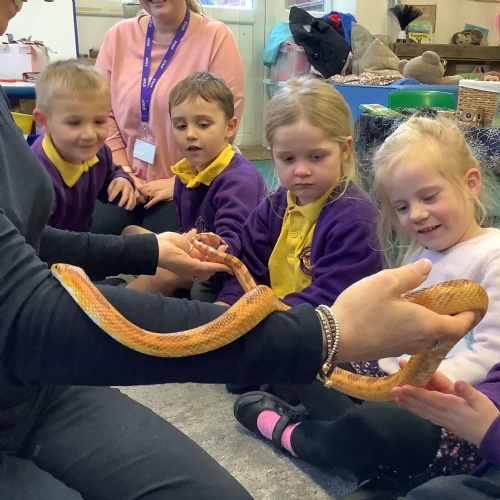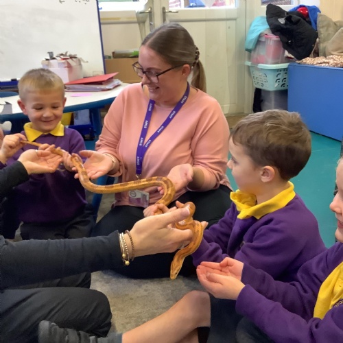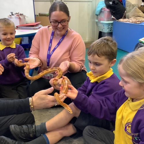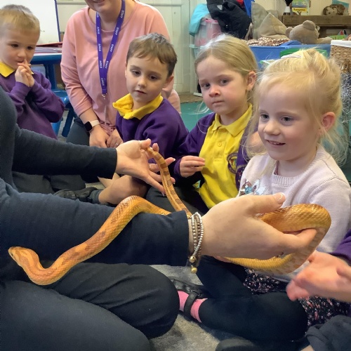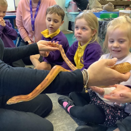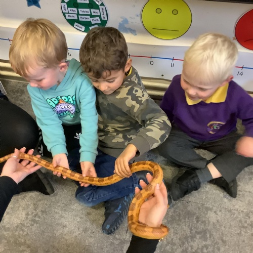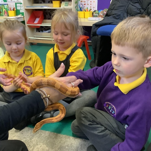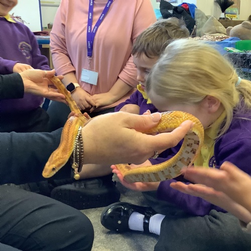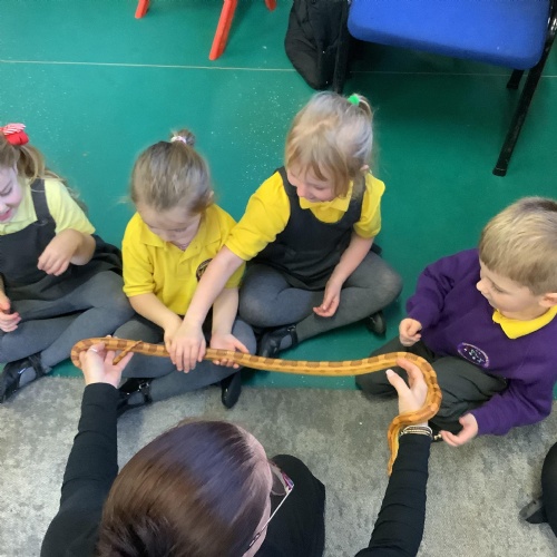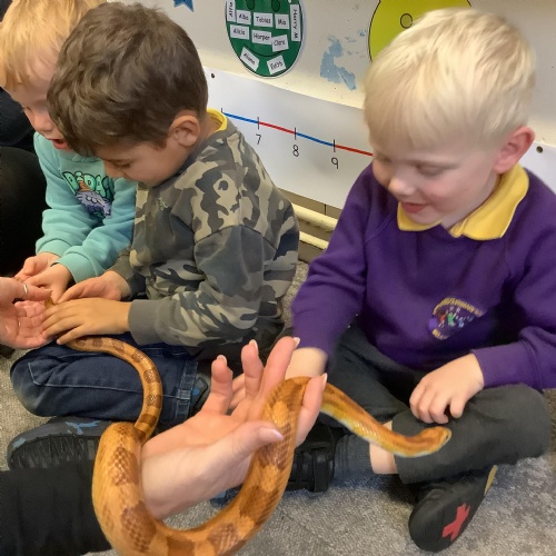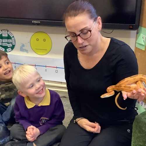 Through a re-telling of The Gruffalo, the children learnt a lot about the different creatures that Gemma brought to school. They learnt all bout why each creature was the colour it was, along with why they had scales or claws, were slimy or shiny!